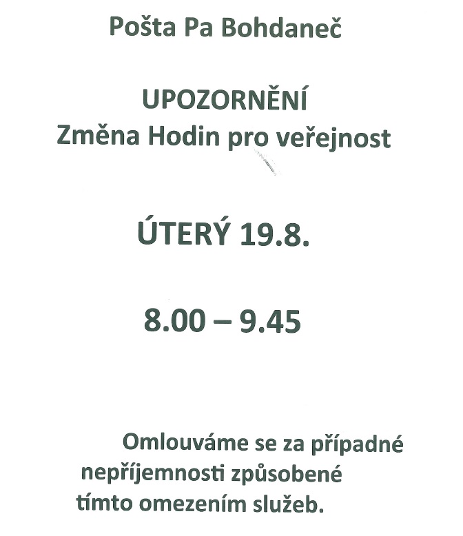 Dne 19.8.2025 otevřeno v době od 8:00 do 9:45 hod.